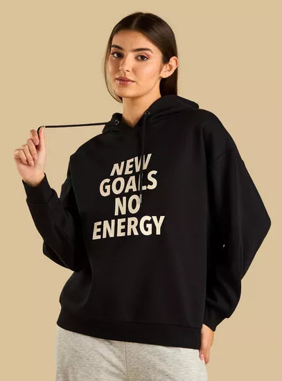 Slogan Print Hooded Sweatshirt